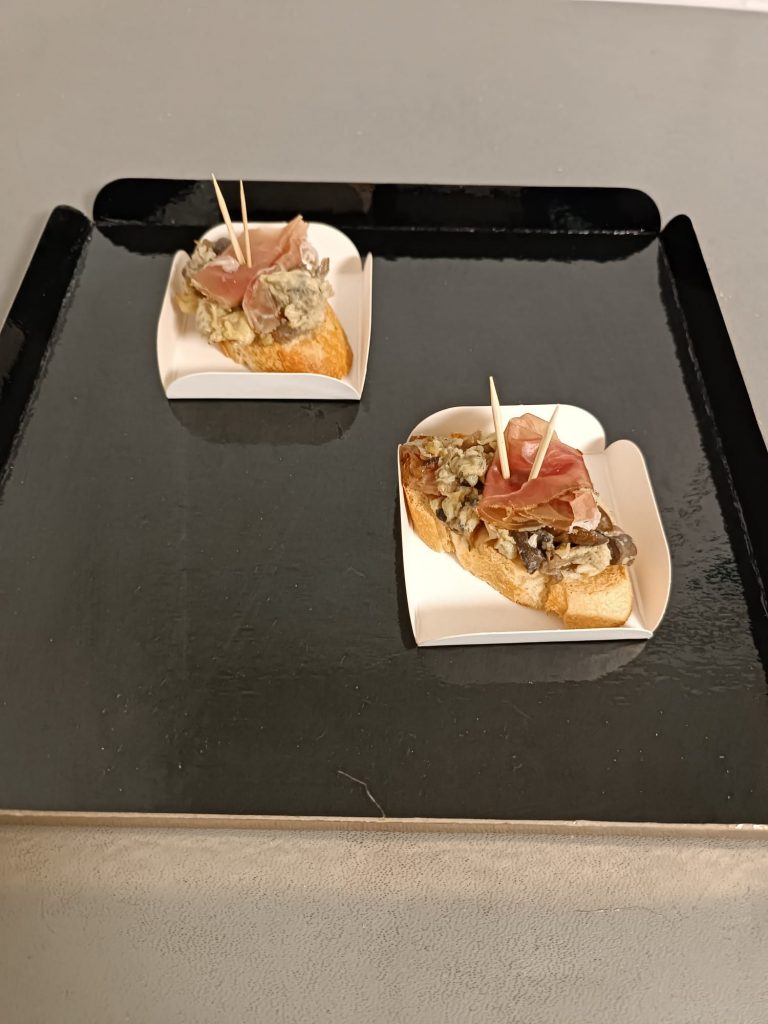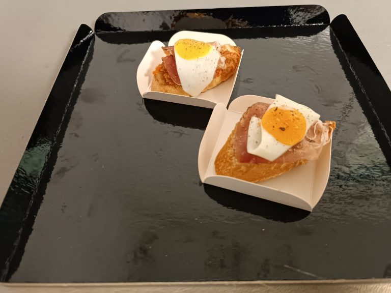 . Tapenade de Tomate / tranche de Jambon cru serrano / Oeuf de Caille frit