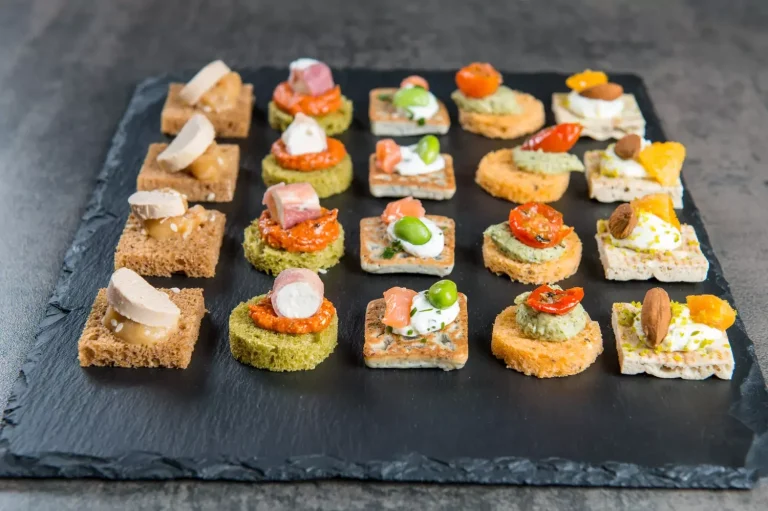 14 amuses-bouches salés et 8 mignardises sucrées, pour un équilibre parfait entre finesse et gourmandise, préparés avec des ingrédients de qualité.
